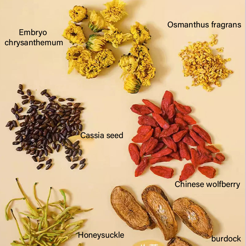 Traditional Chinese medicine health-preserving herbal tea, chrysanthemum and cassia seed, detoxifying, liver-protecting and eye-protecting tea 30 bags per pack